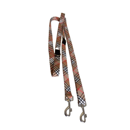 Modelo Multiposición: lleva 2 mosquetones en los extremos y diferentes anillas para usarla de diferentes maneras, en la cintura, en el pecho cruzada, muy larga, para llevar dos perros,etc. Una de las partes lleva un pasador para alargarla hasta 3 metros.