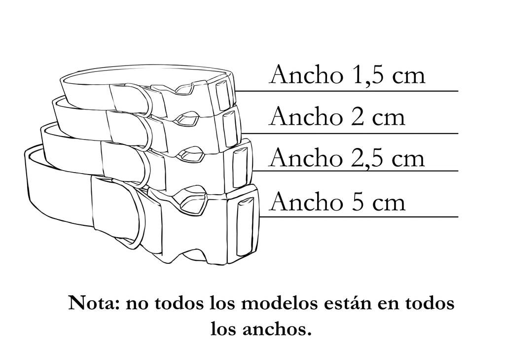 XL: 45cm a 60cm (ancho 2,5cm y en 5cm)